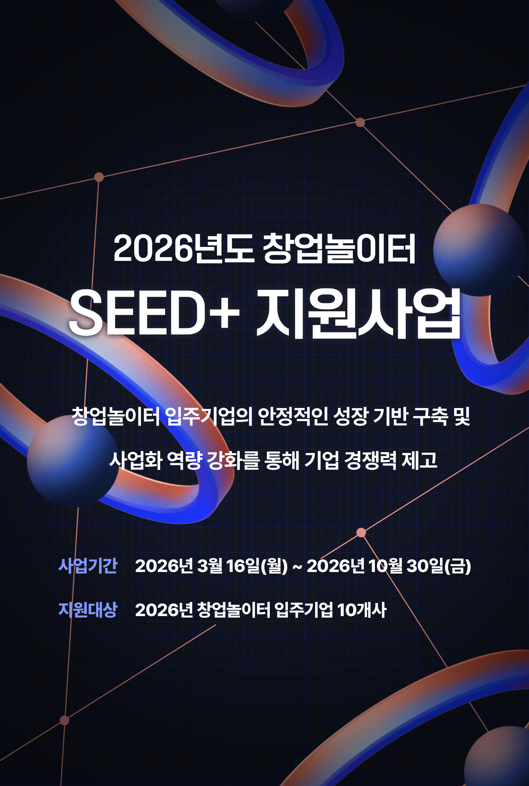 지원 대상 : 2026년 창업놀이터 입주기업 10개사